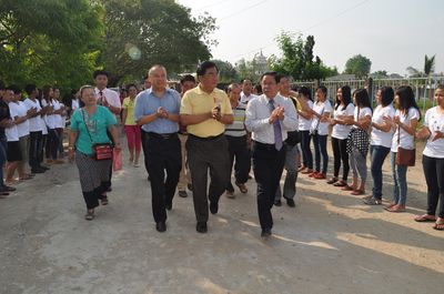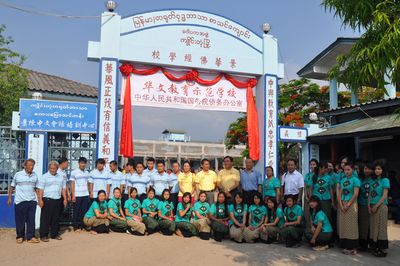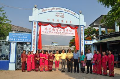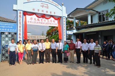 2015年5月15日早上8:00在景栋举行国务院侨办海外华文教育示范学校挂牌揭幕仪式。中华人民共和国驻曼德勒总领事馆沈利滨领事、曼德勒福庆孔子课堂中方主任何林院长、云南省海外华文教育中心缅甸分中心唐建军主任、福庆孔子课堂校长李祖清博士和景栋中文会话培训中心学校董事长欧阳文丽以及全校师生将近200多人等参加仪式。首先仪式上欧阳董事长致欢迎辞、沈领事、何院长和唐主任以及李校长等上台致辞。随后沈领事及欧阳董事长为景栋中会话培训中心学校挂牌揭幕。此外沈领事还给9位海外优秀教师颁奖。最后还带来了可爱的喜羊羊舞蹈、佤族舞和孔雀舞等精彩的表演。最后还参加了座谈会。