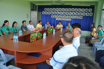 2015年5月16日沈领事一行到达大其力,参加大华佛经学校的华文教育示范学校揭幕仪式。随后沈领事授牌蒋理事长领受,此外还参加了座谈会。