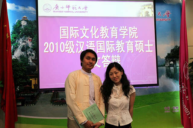 除此,26日,还有一位纯缅族小伙子TUN TUN OO 于桂林广西师范大学,通过论文答辩,获取了硕士学位;23日,缅甸学生龙威、蔡敏慧、林嘉玉、林美宝、在北京中央民族大学,也顺利通过答辩,获得硕士学位。其中龙威与蔡敏慧均为纯缅族。
