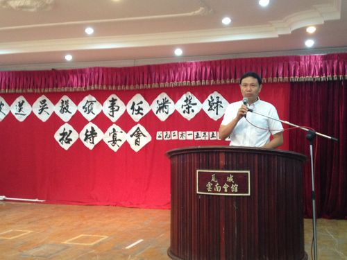 吴毅领事在致词中表示,衷心感谢各位侨领各位侨胞,对他工作的关心和支持。吴领事说侨胞们爱侨爱乡、热心华文教育的精神,令人感动,在任期间一直想为侨胞们做一些事,特别是要简化签证手续,为侨胞提供便利;要为华文教育的发展尽一份力,服务华裔子女,希望云南同乡会创办的云华师范学院越办越好。有所遗憾的是在任内还有两个构想没有完成:一是成立华裔会,二是建立华助中心。希望继任和领导能够实现这两个构想,为侨胞们带来更多的帮助。最后吴毅领事感谢云南同乡会举行的欢送宴会,欢迎大家到他即将赴任的地方圣多美和普林西比岛国旅游观光。