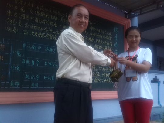 最后学治会的同学将蒸熟的粽子送到老师和同学手中,让每一名学生和老师在这个与众不同的端午节品尝着粽子,颗颗饱满的粽子里包含着浓浓的爱意和无私的奉献.......粽子香甜的滋味滋润着每一人的心田,赞美着羊年端午的粽香。而这粽香对明德学校学治会的同学而言,又别有一番惊喜在心头。不仅如此,姜校长还邀请初中三甲班全体同学到家里做客,亲手给小朋友们做了香喷喷的包子。借此机会学校还举行了主题为“端午节”的征稿学生诗歌或文章作品比赛活动。活动目的陶冶了学生的情操,弘扬了民族优秀的传统文化,培养了学生的爱国主义情怀,让学校的每一种活动真正的变成了学生潜移默化接受爱国与教育的过程。