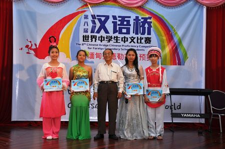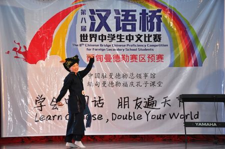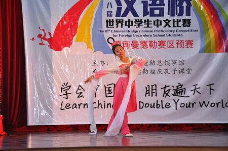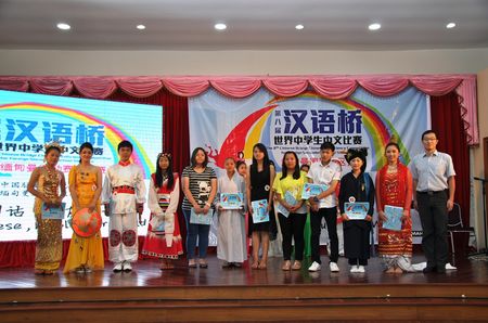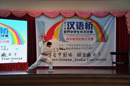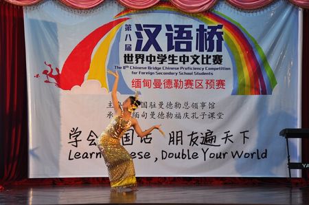 2015年6月28日,上午9:00时,以“学会中国话,朋友遍天下”为题的第八届汉语桥世界中学生中文比赛曼德勒赛区预赛于曼德勒威胜霸大礼堂内隆重举行。来自腊戌、东枝、皎脉、丙弄、曼占、彬伍伦与曼德勒地区华校的(15)名学生前来参赛。此次比赛由中华人民共和国驻曼德勒总领事馆主办,曼德勒福庆孔子课堂承办。