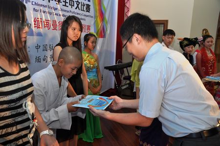 经过一轮精心表演以后,评委选出三等奖11名、及四名最后角逐者。又经过抽签演讲后,由观众举牌选出二等奖2名及一等奖2名。最后两名一等奖选手,再次经过一分钟的拉票讲话,最后由观众再次举牌,腊戌果文学校选手杨青茸、腊戌黑猛龙中学选手查思思,先后被选为参赛者与观摩者,将前往中国参加决赛。