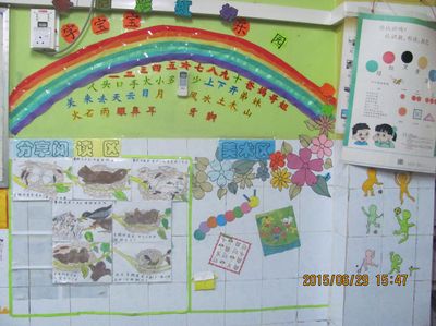 在人的发展过程中,环境起着十分重要的作用。幼儿的大部分学习活动,是在环境的潜移默化中进行的,是一种有组织、有指导的环境教育。而幼儿园活动室和周围环境的墙面布置,是作为促进幼儿发展的不可缺少的“环境”,常常被认为是幼儿园的隐形课程。为了呈现给幼儿一个崭新的学习环境,提高老师们的业务能力,本着全园参与的原则,新学期一开始我幼儿园就着手开展“巧手装份教室、营造温馨乐园”活动,活动以比赛的形式来进行。为期一个月的装饰结束后,每班的教师都充分展示了她们的作品,教室内的每一副绘画作品都紧扣主题,画面生动富有童趣。此次比赛活动,展示了我园教师良好的精神风貌和创作水平,为孩子们的学习提供了一个五彩缤纷的环境。