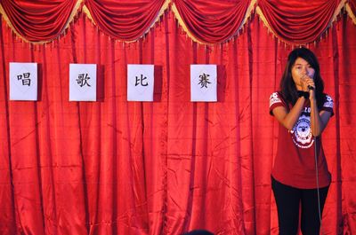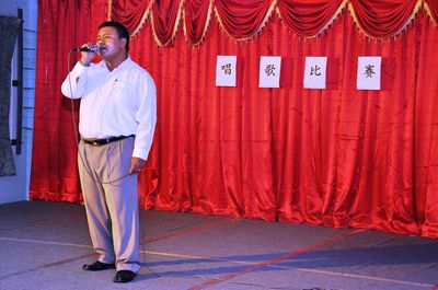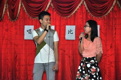 比赛于下午6:00时开始,参赛学生均是零基础学习汉语者,有的只学过1个月,最久的才有三月,参赛学生们勇气可嘉。参赛曲目都是节奏轻快、大家耳熟能详的经典歌曲,比如:《小薇》、《月亮代表我的心》、《你怎么说》、《恋爱评论》、《十字路口》、《童话》等。有一位负责老师解释说:”学生们选这些歌曲,是因为这个歌曲都有缅文版翻唱,对他们并不陌生。唱起来朗朗上口。