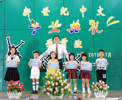 毕业典礼上,新世纪董事长张旺后先生,幼稚园园长余波老师,分别对老师们辛勤付出所取得的成绩,家长们的对学校的大力支持,表示了衷心的感谢,对小朋友中文水平的进步予以了充分的肯定,并对孩子们以优异的成绩升入新世纪小学表示诚挚地祝福。