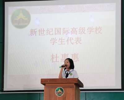 学生代表发言者杜惠惠,向大家讲述了自己在新世纪幼稚园的学习经历,从刚来的一句中文不会讲、不会听,到现在能讲一口流利的普通话,并代表学生登台发言。赢得与会家长的鼓掌欢呼。