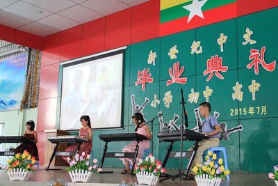 7月11日,缅甸曼德勒新世纪国际高级学校的学生和家长欢聚学校大礼堂,隆重举行2015届小学、初中、高中三级中文毕业班的毕业典礼。