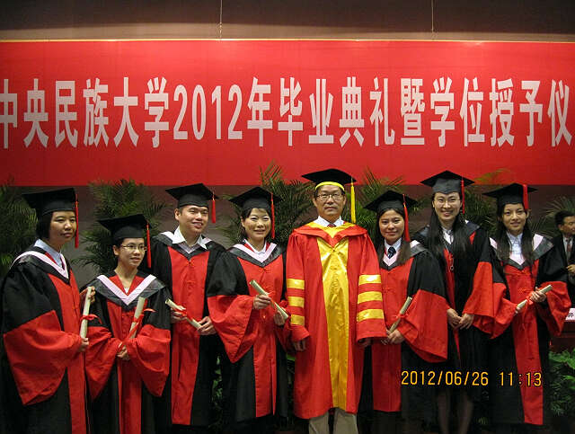 简讯:北京中央民族大学26日举行毕业典礼。缅甸留学生李瑞文、龙威等参加了典礼。此次毕业,缅甸有两位教师(李瑞文、邹丽冰)获得博士学位,有四位同学(林美宝、林嘉玉、蔡敏慧、龙威)获得硕士学位。他们均由曼德勒孔子课堂推荐,获取相关全额奖学金,就读中央民大语言学与应用语言学、汉语国际教育、等专业。他们领取学位后,将返回缅甸,为汉语教学推广,做出努力。