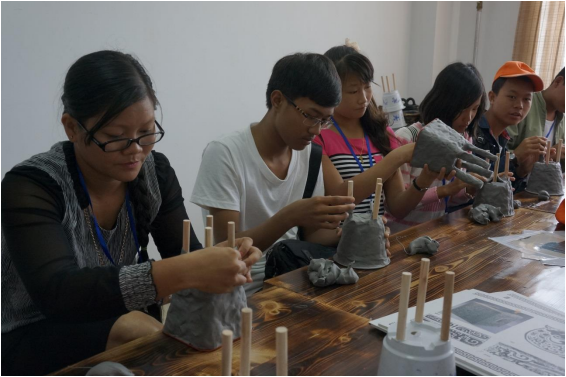 之后同学们体验了亲手制作“青铜器”。他们充分发挥着自己的创作力、想象力, 制作着世界上独一无二的泥制“青铜器”。有的还在上面用中文刻下“中国”两个字。
