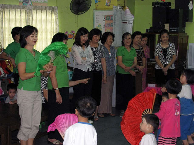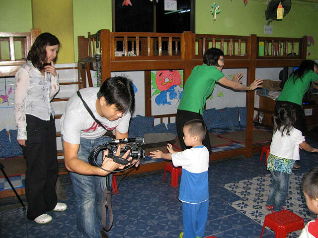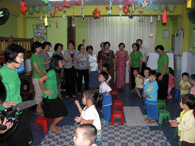 随后一同前来的记者们到幼儿各班参观,仔细看了各班教室的墙面装饰,幼儿班的孩子们为来宾们表演了刚刚排练好的舞蹈;张记者请大班的孩子指读贴在墙上的汉字、英文单词和缅文单词。幼儿小班的孩子还朗诵了唐诗和歌唱。