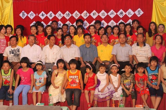 7月30日,晚上7时,在啤谬天后宫礼堂,举行了啤谬汉语教学点第五届及第六届会话班结业典礼。曼德勒福庆孔子课堂考察团及当地董事会侨领、学生、家长、百余人参加了活动。