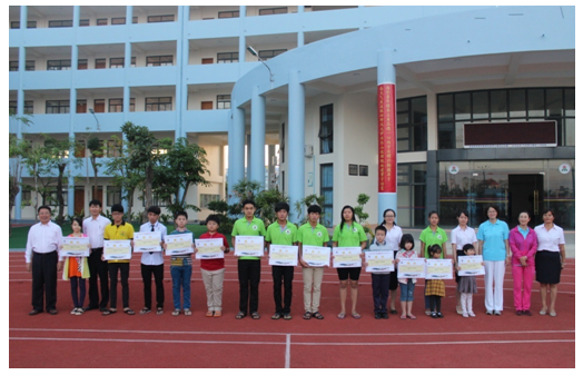 接着,宝翠兰副院长宣布了“校舍落成庆典”中表现突出的班级,并邀请学校领导为各班颁发了“云华校园示范之花”集体奖及“云华校园新秀之花”集体奖,肯定了同学们的主人翁精神,赞扬了同学们勤劳质朴、团结进取的品质,同时希望广大师生不断进取,开拓创新。