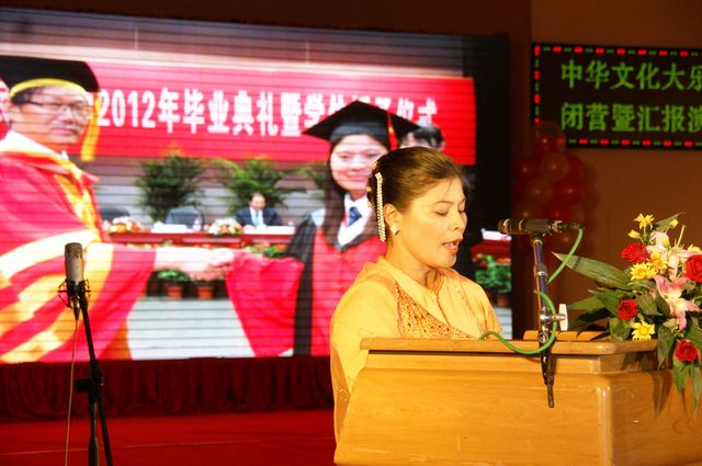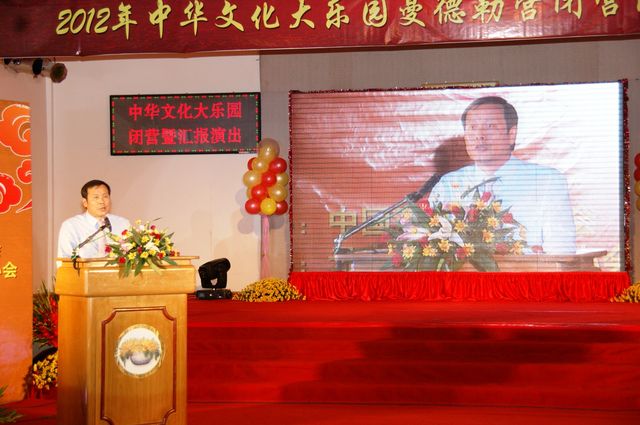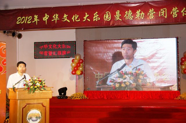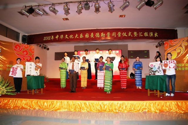 2012年8月13日,晚上7时,2012年中华文化大乐园曼德勒营闭营仪式暨汇报演出,于曼德勒福庆大礼堂内隆重举行。中华人民共和国驻曼德勒总领事馆杜振权领事、中国国务院侨办文宣司副司长汤翠英、云南省侨办袁广兴副主任、等出席此次大会。