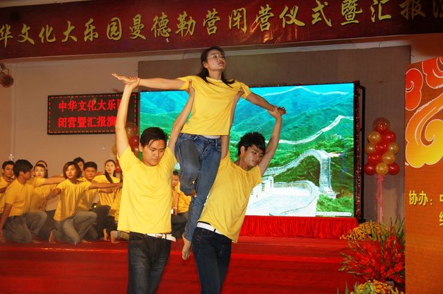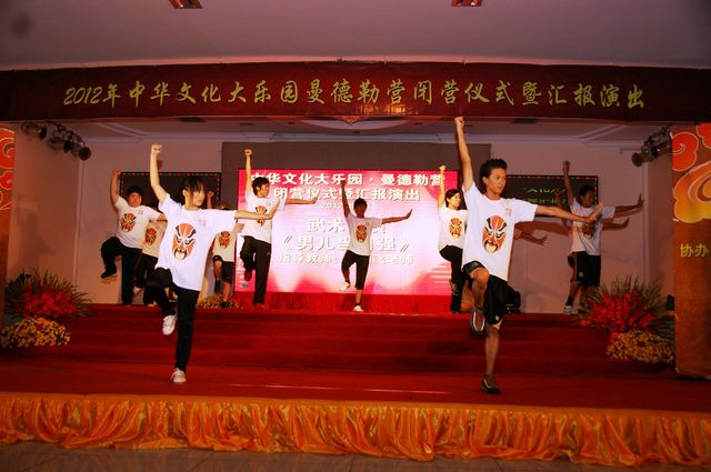 最后,开始上演中华文化大乐园汇报演出,演出节目出自为期10天的大乐园活动中所学之武术、舞蹈、演唱等,以及参加中夏令营归来者所以学来之咏春武术表演。精彩的演出博得观众热烈掌声。