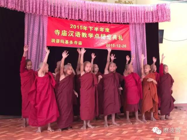 2015年12月26日上午,位于缅甸曼德勒市的亚达那奥敏和玛基多两所寺庙学校汉语教学点汉语班结业,为期三个月的学期结束,小伙伴们不仅学会了基本的会话汉语,还练习了舞蹈和太极拳。