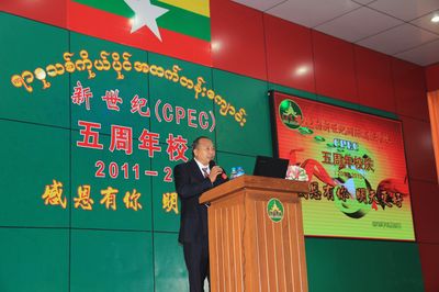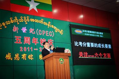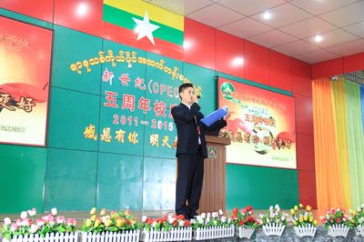 “新世纪才发展五年时间,还像一位蹒跚学步的娃娃,还需要大家的鼓励与呵护,支持与帮助。新世纪愿同各华校携手,为满足缅华社会对教育的多元需求,而共同努力,愿与热心华教的人士一道,为缅华教育的发展,把新世纪教育做得更好。”
