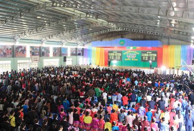 12月26日,缅甸曼德勒新世纪国际高级学校隆重举行“感恩有你•明天更好”五周年庆典活动。曼德勒云南、福建、广东、果敢、多省籍等同乡会馆,华侨妇女联谊会、金多堰慈善总会、老人康乐中心、健身中心、曼德勒华助中心、云南驻曼海外文化交流中心等组织,福庆、云华、昌华、明德、孔教、育才等华校代表,以及新世纪学校家长、董事会、校友会和全体师生,近2000人参加了庆典仪式。