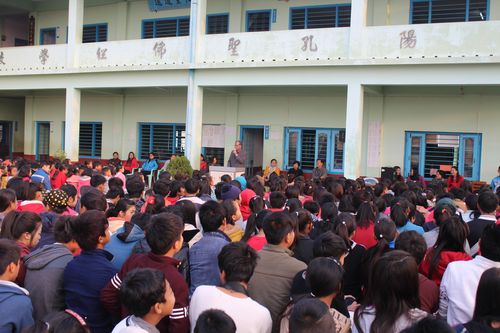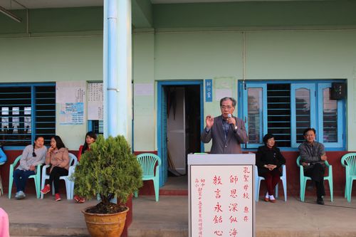 接下来由曼德勒云华师范学院副院长宝翠兰老师讲话,向师生介绍了云华师范学院的办学宗旨和课程设置,云华师范学院每年为缅甸华校及社会其他行业培养大批适用人才,欢迎同学们中学毕业后继续到云华师范学院深造,学成后回报母校,服务家乡。