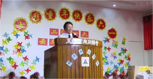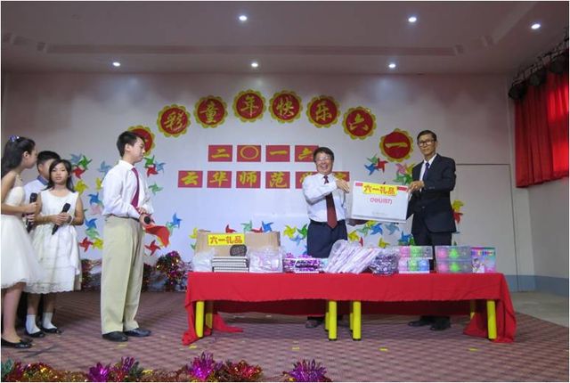 接着,云华师范学院副董事长杨春勉先生代表董事会向孩子们赠送礼品,李暾院长代表学校接收了礼品。