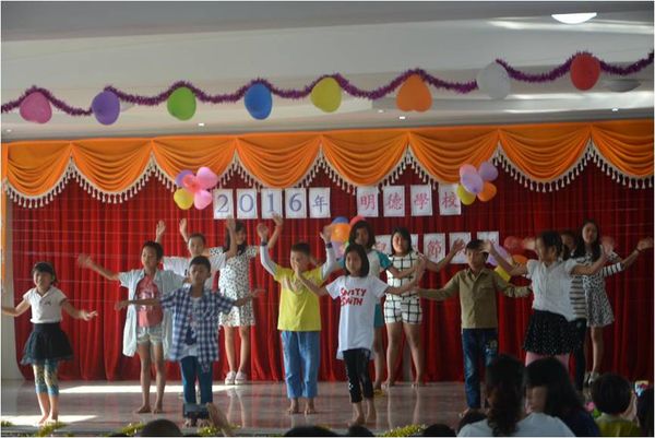 “六一”儿童节是国际节日,为了让明德总校的幼小同学过好这个节日,明德的初小部教师晏照蕊、李柱柱、许满金、廖春燕、字翠平、黄秋丽等。这七位年轻教师他们都是去年高三毕业的优秀学生留校服务。不但窈窕美貌,知识扎实,而且极具爱心。这次借欢度儿童节之机会,她们这七仙女承包了“六一”儿童节盛会的全部组办事宜任务。会场经过七双巧手的精心布置,便有了大场面的“范儿”,令人赏心悦目。七仙女不但硬件了得,软件方面也虑及全面。她们将盛会的分分钟都做了精心设计,歌舞表演、才艺展现,游戏内容,丰富多彩,奖金发放,儿童礼品,食物分发都准确到位。可谓严丝合缝,滴水不漏。姜校长看着“七仙女”的活力展现、如此的精明干练,心灵手巧,笑得合不拢嘴。