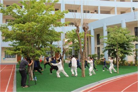 接着,摄制组对学校的教育教学常规工作实况进行了拍摄,包括中华武术表演、太极拳教学、舞蹈排练、剪纸课堂、国学诵读活动,以及在校师范生课堂教学实录、教师办公场景等。
