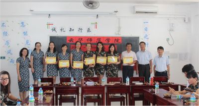 接着,大会对本学年的“云华优秀教师”进行了表彰,由学院领导为优秀教师颁发了荣誉证书和奖金。本次评先评优旨在激励教师工作的积极性,发挥教师队伍中先进示范带头作用,树立教师典范,从德、能、勤、绩等方面对教师进行综合考核,共评选出了16位教师进行表彰。