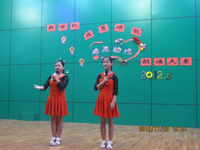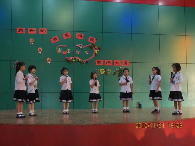 大赛分为幼儿组、少年组、青年组分别进行,选手们以个人或集体朗诵的形式,在感恩节到来之际,对亲情、友情、师生情进行了热情洋溢的讴歌。