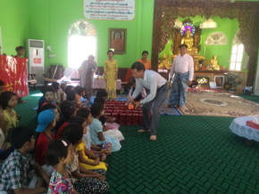 中国驻曼德勒王宗颖总领事同寺庙住持就中文教学交换了意见,为学校师生介绍了中华传统节日—中秋节的来历和意义,向孩子们一一赠送了月饼,鼓励孩子们好好学习汉语,将来成为中缅友好的使者。