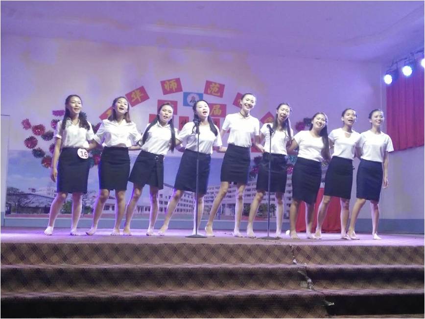 经过激烈的角逐,比赛结果现场揭晓:获得一等奖的是何佳慧老师,她演唱的歌曲《昨夜星辰》虽然是一首老歌,却给全场观众留下了极其深刻的印象;获得二等奖的是莫小盼老师演唱的《感恩的心》、阎自娇和李桂兰老师演唱的《最炫民族风》;王付成老师、苏秉莉老师和王磊仙老师分别获得了本次大赛的三等奖。本次晚会充分展现了云华师范学院教师的文艺才华,加强了教师之间的沟通,为教师提供了一个展示自我的平台,让他们秀出了最独特的自己,也充分展示了奋发进取的云华教师形象。
