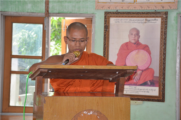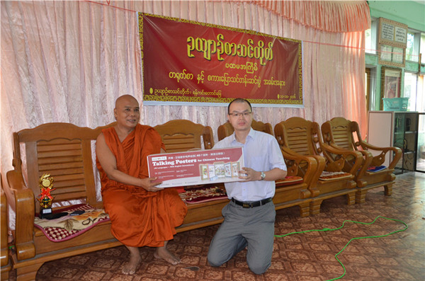 主持和尚佐迪嘎师父讲话时表示,学习语言是吴英寺佛学院的重要课程之一。佛学院当中开设缅文、巴利文、英文等,但是此次才第一次开设汉语课,对此师父感到十分的欣慰。他说,从小对这神秘的方块字产生极大的兴趣,今天梦想成真,他本人都在学习汉语,对此他感谢中国驻曼德勒总领事馆以及福庆学校孔子课堂的大力支持。师父还说出了他的远大目标,他说,吴英寺佛学院的僧侣在巴利文、英语方面都已经有硕士博士的出现,他希望,不久的将来,吴英寺佛学院能够培养出中文的硕博士生!以便为佛教的国际传播做最大的努力!