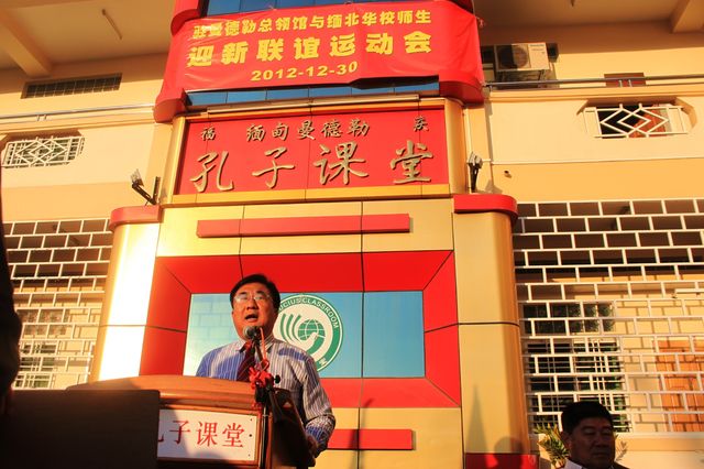 2012年度曼德勒总领事馆与缅北华校师生迎新联谊运动会于12月30日上午(7:00)时在福庆学校校园内隆重举行。来自各地区的运动团队齐聚一堂,共同欢度这一盛事。此次参加运动会的单位有:总领事馆、福庆、孔教、明德、昌华、新世纪、眉苗佛经及年多(2)所华校、东枝兴华及果文(2)所华校、抹谷千佛寺佛经学校和腊戌地区代表团, 12 个团队,共500余名校领导、师生参加。自2000千禧年以来就举办的运动会,此次是人数与规模空前最多的一次。