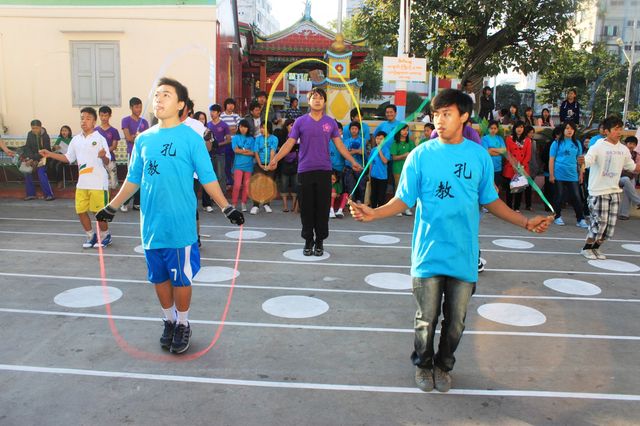 上午(7:00)时整,运动会开幕仪式开始。在福庆鼓乐队的雄壮鼓乐声中带领各运动队入场。司仪员宣布运动会开始后,郁伯仁总领事讲话。郁总向大家表示祝贺,欢呼送旧迎新,呼吁同学们重视体育,加强锻炼,努力学习。运动会各种项目在开幕式后相继举行。此次运动项目多姿多彩,有:投球、羽毛球、乒乓球、跳绳、赛跑、接力赛跑、集体跳绳、拔河、等十多个项目。最后一个项目拔河结束后,在福庆大礼堂内,总领馆设宴招待所有师生。在宴会上,各华校同学还表演了丰富多彩的文艺节目。中午1时,活动圆满结束。在欢呼声中大家依依不舍挥手告别。