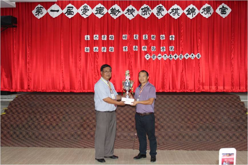 比赛结束后,各位领导为获奖团体及个人颁发了奖杯和奖金。曼德勒新知书店的杨晓东经理特别为获得个人前三名的选手赠送了图书。至此,首届曼德勒校际象棋锦标赛圆满落下了帷幕!