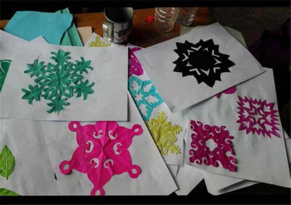 剪纸是中国的一种民间文化艺术形式。它是用剪子、刻刀在鲜艳的彩纸上剪刻出来的各种各样的图案。从色彩上看,中国剪纸分为“单色”和“彩色”两种。单色剪纸多是红色,大方美观;彩色剪纸花花绿绿、五颜六色,非常绚丽。