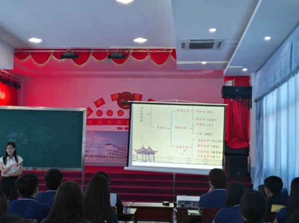 师范部现代汉语课由付彦飞老师展示。内容是“词义的性质和构成”。分别从词义的性质:词义的概括性、模糊性和民族性;词义的分类:概念义、色彩义等几个方面给同学进行教学。