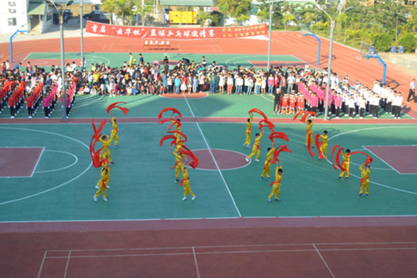 云华师范学院李忠发同学代表运动员宣誓,承诺将遵守比赛规则,服从裁判,尊重对手,赛出水平,赛出风采;云华师范学院宿晓华老师代表裁判员宣誓将秉着“公平、公正、公开”的态度进行裁决,遵守比赛规则。随后云华师范学院基础部同学的舞蹈《中国歌最美》、幼稚园篮球宝贝们的精彩表演以及师范部全体新生的体操表演,博得了全场的阵阵掌声。