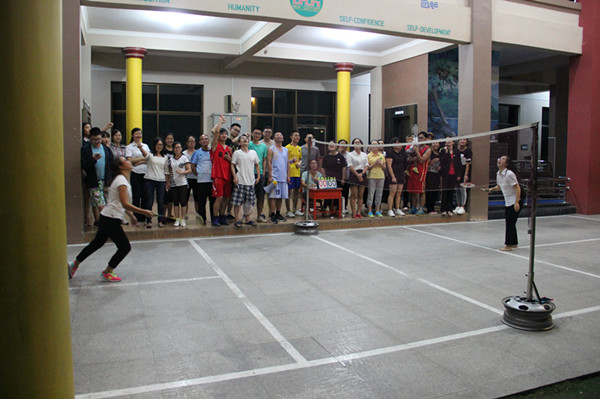 本次运动会由新世纪全体中方教师和部分本土教师参加,共设羽毛球、乒乓球、篮球三个独立项目。羽毛球、乒乓球设有男女单打、男女混合双打,通过初赛、复赛、半决赛、决赛的激烈角逐,决出各项目的一、二、三名;篮球设有男女混合分组对抗赛、男女定点投篮比赛。老师们积踊跃报名积极参与,比赛精彩纷呈。在比赛过程中,虽然大家不是专业选手,但个个参与积极,精神抖擞,场上比赛精彩激烈,场下助威激情澎湃,整个比赛期间,大家都在紧张而愉快的气氛中度过,既锻炼了老师的身体,又提升了团队的凝聚力。