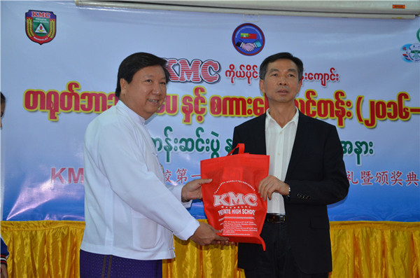 1月18日(星期三)上午8时,曼德勒KMC私立学校与福庆孔子课堂联合举办的第一期汉培训班结业典礼暨颁奖典礼在KMC私立中学举行。中国驻曼德勒总领事馆王宗颖总领事与杨领事及雷领事、福庆孔子课堂黄鹏飞董事长与董事会、缅方主任李祖清与中方主任李涛、副校长吕子态、私立学校汉语教学点负责人李瑞文等参加HSK冬令营归来学员及KMC私立学校的师生近百人出席活动。