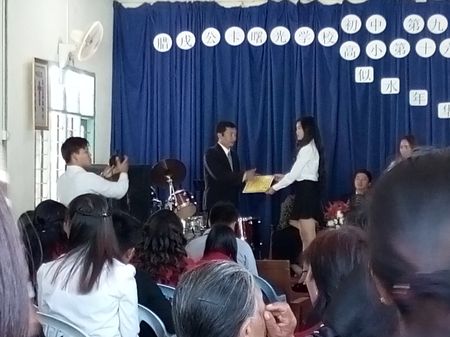 本届毕业典礼在主持人宣布下拉开了帷幕。首先,由陈信寿牧师正道、公卡曙光学校学长宝道孔致毕业词。陈信寿牧师在正道中表示,同学们在毕业后的人生旅程里要以诚信、守信赢得人们的信任,赢得社会的重用。公卡曙光学校学长在致词中表示,同学的毕业证实了家长们的付出,同学们的坚持,今天终于得于硕果累累。同学们的毕业,对老师来说社会又多了知识分子,做老师的我们即使再苦再累,也要为社会培养更多有用的人才。保孔道学长在致词中,还对一直以来支持学校的懂事、家长以及社会各界热心人士表示忠诚的感谢!并且,还嘱咐学生在毕业后的道路要不断学习,不断提升把自己,在社会上做一个才德兼备的公民,用自身的才德在社会上发光发热造福人群!