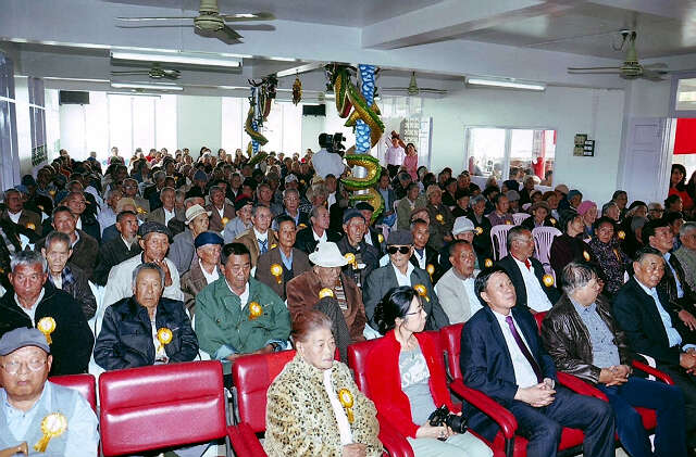 一如既往,订期在每年的农历正月初四举行,今年的寿星人数有270位。中国驻曼德勒总领事馆郁伯仁总领事夫妇莅临参加并致词。邀请来参加的团体、学校,和以往一样,有云南同乡会、三山同乡会、广东同乡会、华侨妇女福利会、皎边华侨理事会、爱华学校、千佛寺学校、明德学校、庆华学校。父老们代表的相继热情洋溢的讲话,增添了热闹的气氛。