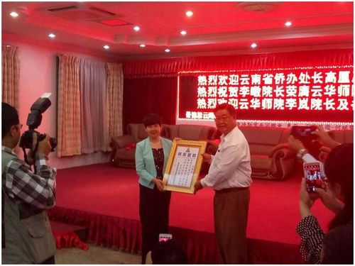 参加此次座谈会的有云南会馆众理事、云南省侨办文化教育处高厘原处长、云南海外文化教育中心缅甸中心唐建军主任、云华师范学院荣誉院长李暾教授、云华师范学院新任院长李岚女士及全体教师。在座谈会上尚兴玺先生对李暾院长两年来对云华师范学院的付出表示感谢,真诚的授牌聘请李暾教授担任云华师范学院的荣誉院长。座谈会上李暾院长和高厘原处长作了热情洋溢的发言。李暾院长深情地感谢云南同乡会尚兴玺理事长和全体理监事的信任和支持,感谢云华师院全体干部和教师优秀团队的支持和协作,同时深挚地感谢中国国侨办和云南省侨办的支持和鼓励,也感谢李岚院长的受聘和到任,使云华师院能持续健康顺利发展。接牌仪式上李岚院长对尚兴玺会长的信任表示感谢,对李暾教授的力荐表达感谢之情,对带领云华师范学院华文教育队伍再创佳绩满怀信心。