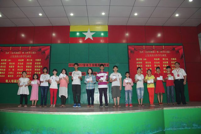 近日,曼德勒新世纪国际高级学校举行了期中质量检测,并为本次测试取得总分前三名的同学以及本学段在《金凤凰报》等报刊上发表文章的同学举行了隆重的颁奖活动。
