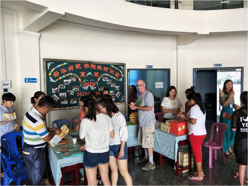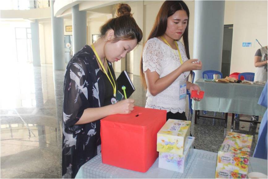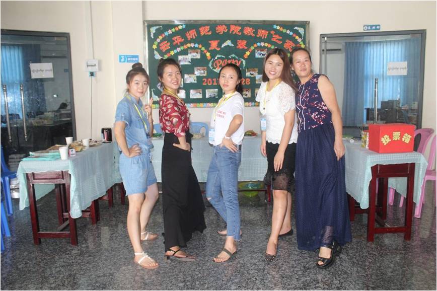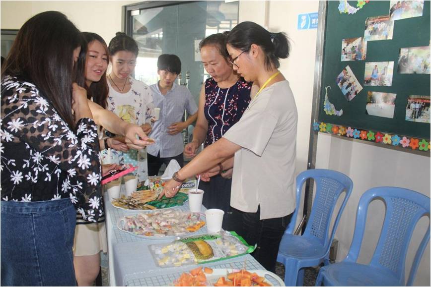 “夏装party”,就是由每一位教师身着自己心仪服装,来到活动场地领取活动票券并进行投票活动,评选出最佳着装、最佳仪表、最佳笑容、最佳风度、最佳参与各一名,教师可根据票券领取纪念品一份。另外,活动场地提供水果、咖啡、奶茶、特色小食品等供教师食用。其中,食品来源有缅甸当地、云南特色、厦门零食......