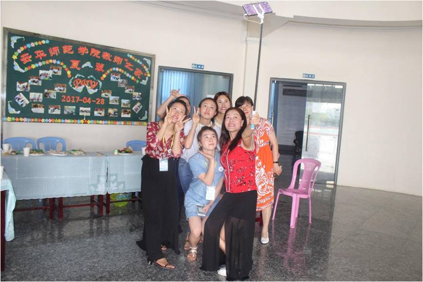 为了继续促进校园和谐,加强教师之间相互了解和友谊,丰富教师的课余活动,提高教师的幸福指数。云华师范学院于2017年4月28日下午两点至四点,在学校一楼大厅举办四月份“教师之家”活动——夏装party。尚兴玺董事长、李岚院长以及全体教师参加了本次活动。这是云华师范学院“教师之家”成立以来的第二次活动。