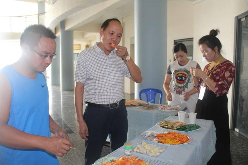 活动前两天,由宿晓华主任负责准备相关物品,刘云老师负责布置活动场地。28日下午一点,由宿老师带领学生、老师布置活动场地,以上次的“踏春之行”的照片为背景,桌子上依次摆放厦门特产,云南食品,咖啡、奶茶、糖果、水果、纪念品及投票箱。具体食品有各种口味的牛肉粒、从厦门带回来的榴莲糖、各种鱼产品、缅甸当地的咖啡、奶茶,还有木瓜、西瓜以及香蕉。