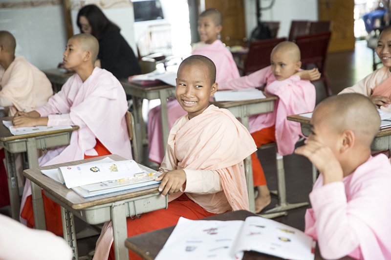 2016年11月以来,每逢周二、周六,缅甸老师苏雪蓉就会去仰光北奥加拉巴区的Buttha Ditar寺庙,给这里的孩子们教授中文课,除了一年一度盛大的泼水节假期外,从未间断。缅甸是佛教国家,仅仰光一座城市,就有2000多所寺庙,其中228所是寺庙学校,这些学校在讲经诵道之外,还承担着收容孤儿并教化他们的社会功能。寺庙学校与政府学校并驾齐驱,支撑着缅甸的基础教育体系。Buttha Ditar即是其中之一。