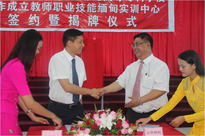 5月22日下午,德宏师范高等专科学校与缅甸云华师范学院合作成立教师职业技能缅甸实训中心签约暨揭牌仪式在位于缅甸曼德勒的云华师范学院举行,双方就两校交往与合作进行了友好会谈并签订教育合作协议。