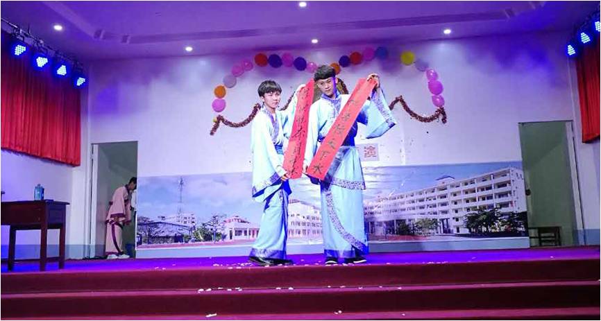 本次活动由孙俪月老师、付彦飞老师两位老师策划,两位老师提前几周事先在各班部置,然后对各班节目作品分别进行指导、提出修改意见,在两位老师的层层把关和辛勤付出下,以及在各班同学的精心准备下,舞台上各班汇演节目精彩纷呈,为广大师生呈现了一场视觉和听觉盛宴。整场晚会持续了一个半小时。