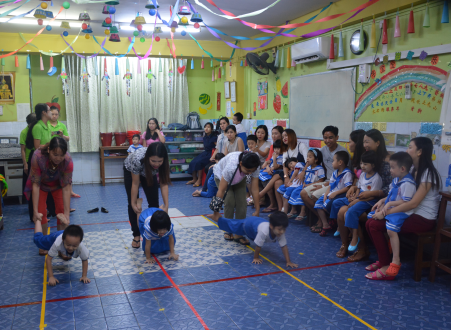 早在六月一号之前,缅华妇协教育中心就开始以班级为单位布置富有欢庆气氛的教室环境,并由学校准备好活动奖品、礼品及活动当天的餐饮。由于时间场地限制,此次儿童节活动周末班和幼儿班分别在两天展开进行。5月27日上午九点,周末班的孩子们陆续到达学校来参加期待已久的“六一”儿童节。人员到齐之后,在老师们的组织下,学生们有秩序的开始了各种游戏活动。“投篮游戏”、“投筷子游戏”、“贴纸游戏”“摸红球游戏”等等一系列的游戏进行的如火如荼。孩子们排队轮流玩各种游戏,现场气氛火热但又不失规范性。同时,游戏胜利者可以获得学校准备的各种奖品,孩子们享受这个活动,并享受游戏过程,本次活动一直持续到上午11:30才结束,孩子们仍意犹未尽。在活动结束后,学校给每个学生发一个书包作为儿童节礼物,并贴心的为孩子们准备了美味的午餐。
